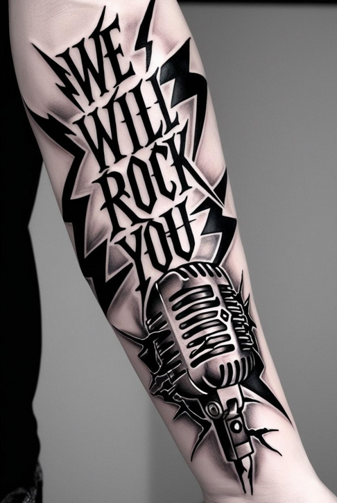 Picture this: Queen's iconic lyric floating through the air, "We will rock you," stunningly displayed in a gothic script that demands attention. The combination of music lyric tattoos with a bold aesthetic can transform any phrase into a work of art. Adding elements like lightning bolts or a fractured microphone only amplifies the drama.