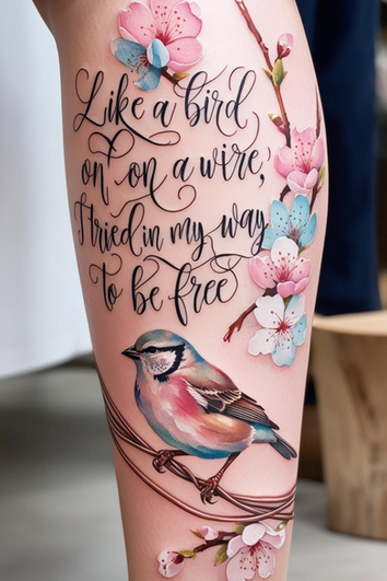 Choose a lyric and customize it with your own style. People often integrate personal symbols into their tattoo designs, such as nature elements with Leonard Cohen's "Like a bird on a wire." This blends personal meaning with visual art, creating something unique.