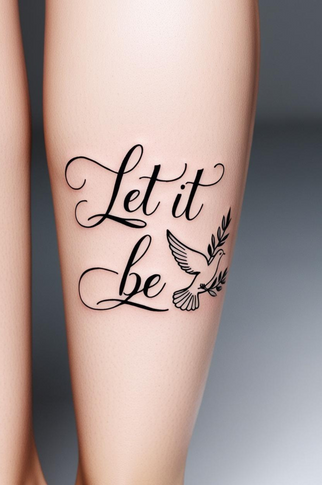 In the realm of script tattoos, the choice of font holds unmatched importance. Just like a voice inflection that changes the tone of a conversation, the font in script tattoos dictates the emotional nuance. Take, for instance, The Beatles' iconic phrase, "Let it be" — penned in cursive, paired with a simple line drawing of a dove. The elegance of cursive script enhances the tattoo's soothing message, while the dove adds a peaceful, symbolic touch.
